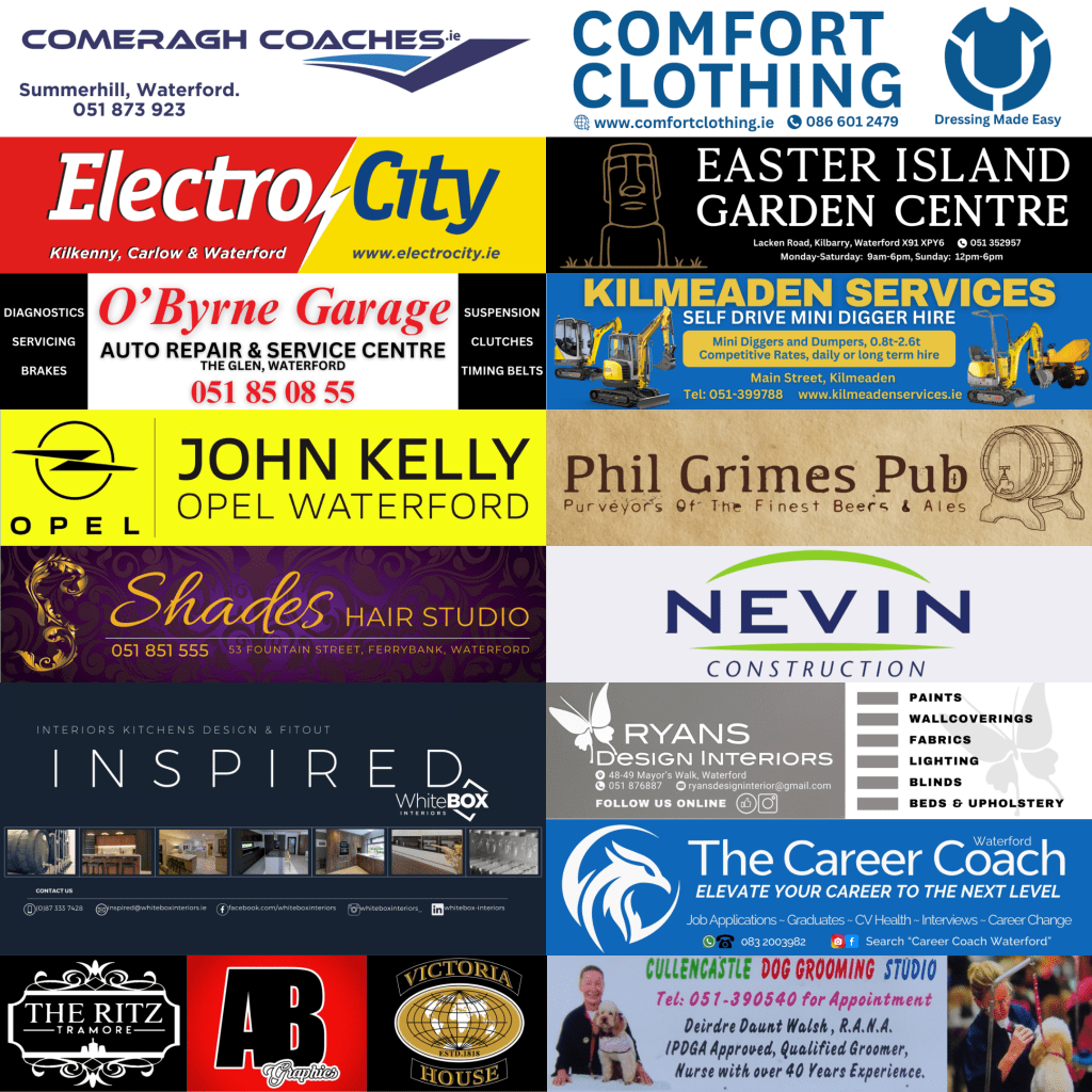 Note: With roadworks ongoing on the approach road to Portlaw until 7pm, you may be diverted or delayed with a Stop/Go system, so leave sufficient time to get there. Eircode for Portlaw AFC is X91 KH66.