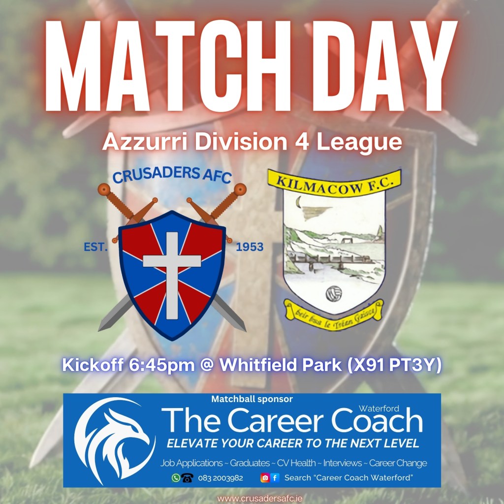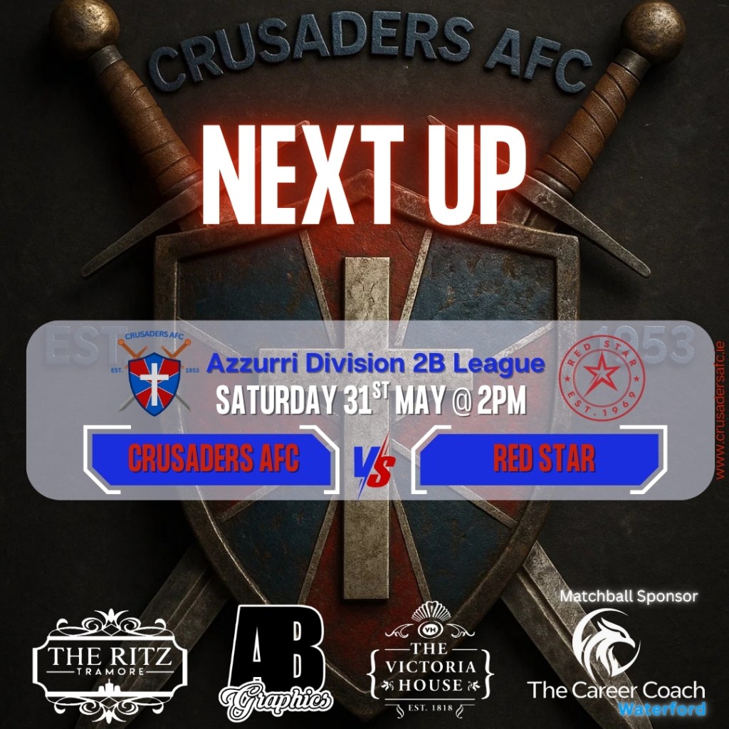 A busy evening at Crusaders this evening, with our 2B team on their travels to Portlaw and our 4th division veterans at home entertaining Kilmacow. Kick off @ Whitfield Park is 6:45pm.