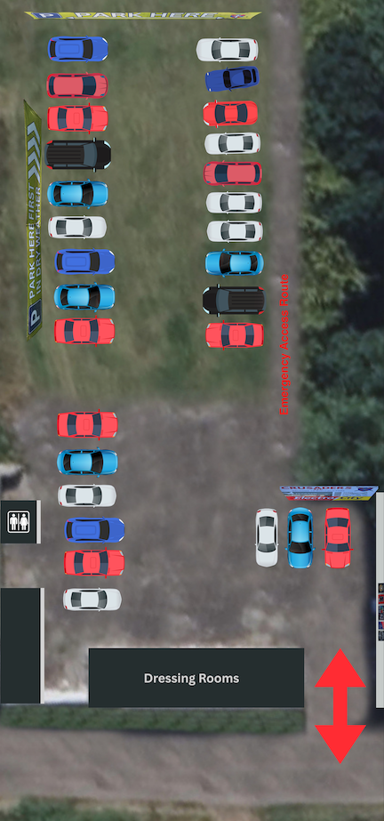 In the diagram below, you can see the best place to park, ensuring nobody is blocked in and maximising the space available. Please use the grass parking area first when possible, with later arrivals using the space closer to the dressing rooms/toilets.
