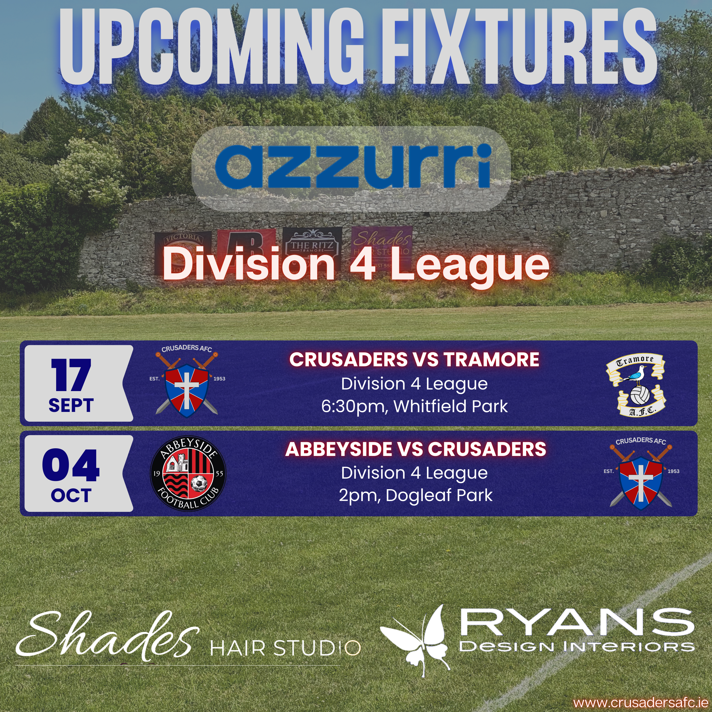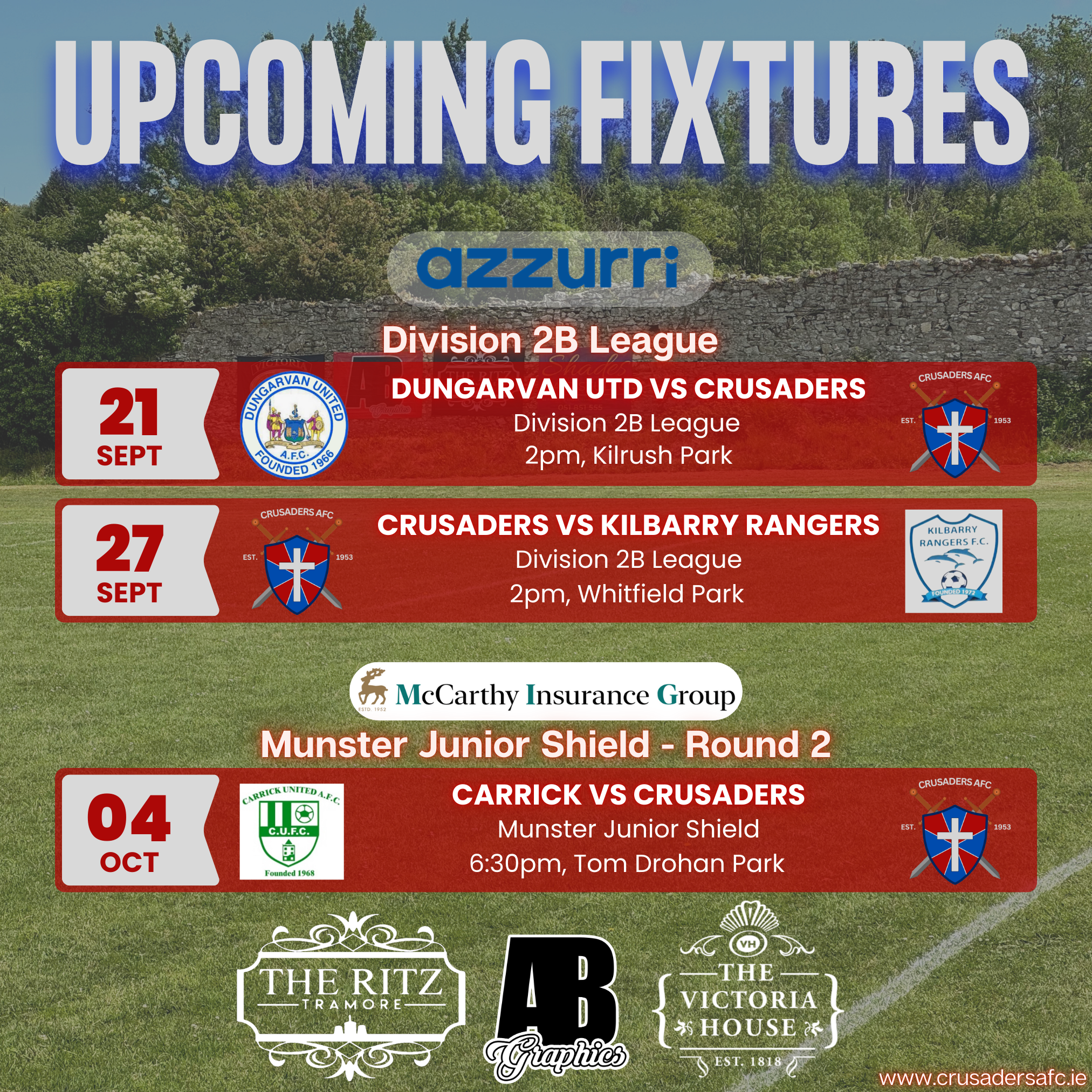 Below are our remaining September fixtures, leading up to a massive Super Saturday on 4th October, when both the 4th division team and the 2B team are in action, the latter as we enter this season’s Munster Junior Shield!