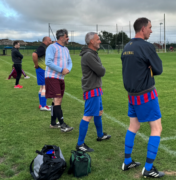 The team had a slightly different feel to it, with full backs David Power and John Rockett raiding the wings and covering the flawless Kent and O’Byrne in the middle, with Deep Purple Lawro on goal. Barney and Austin assumed their usual positions in the middle, flanked by the evergreen Duckie and and Duracell Hunty, with target man Dower and physio’s dream Egan up top.